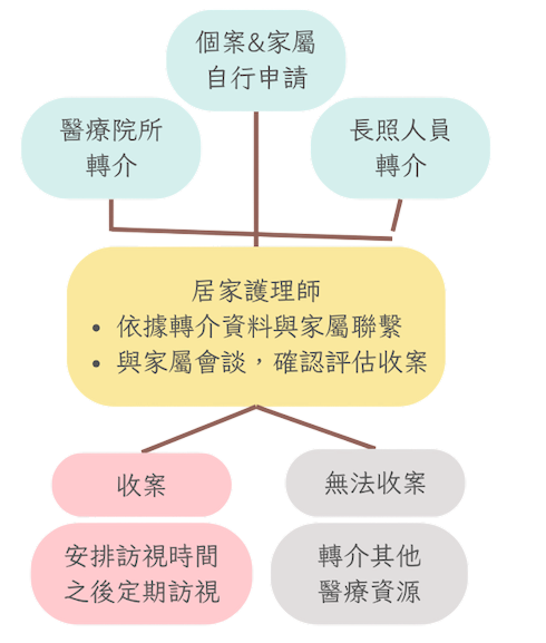 如果家人因為身體不方便、長時間臥床、手術後需要照顧,或者有慢性病(像是中風、失智、癌症、帕金森病等)。另外,想要在家裡善終,都可以申請居家護理服務。