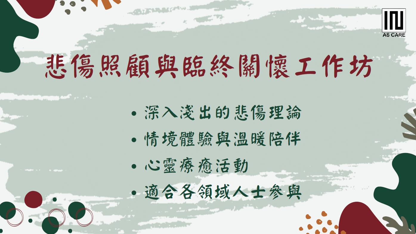 [實體]悲傷照顧與臨終關懷工作坊(建課中)